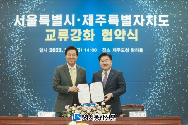 ¿À¿µÈÆ Á¦ÁÖµµÁö»ç¿Í ¿À¼¼ÈÆ ¼¿ï½ÃÀåÀº 3ÀÏ ¿ÀÈÄ Á¦ÁÖµµÃ»¿¡¼ °íÇâ»ç¶û±âºÎ Ȱ¼ºÈ µî Áö¿ª±³·ù Çù·ÂÀ» À§ÇÑ Çù¾àÀ» ü°áÇß´Ù.