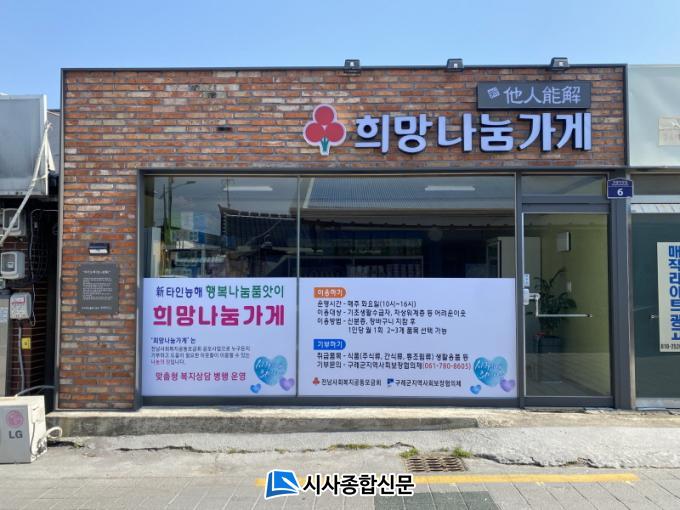 ±¸·Ê Èñ¸Á³ª´®°¡°Ô´Â Àü³² »çȸº¹Áö°øµ¿¸ð±Ýȸ °ø¸ð»ç¾÷À¸·Î ±¸·Ê±ºÁö¿ª»çȸº¸ÀåÇùÀÇü¿¡¼ ¿î¿µÇϰí Áö¿ª ÁÖ¹ÎÀÌ ½Äǰ·ù, »ýȰ¿ëǰ µîÀ» ±âºÎÇÏ¸é ±âÃÊ»ýȰ¼ö±ÞÀÚ, Â÷»óÀ§°èÃþ µî ¾î·Á¿î ÀÌ¿ôÀÌ ¿ù 1ȸ¿¡ ÇÑÇÏ¿© 2~3ǰ¸ñÀ» ¹«·á·Î ÀÌ¿ëÇÒ ¼ö ÀÖ´Â °ø°£ÀÌ´Ù.