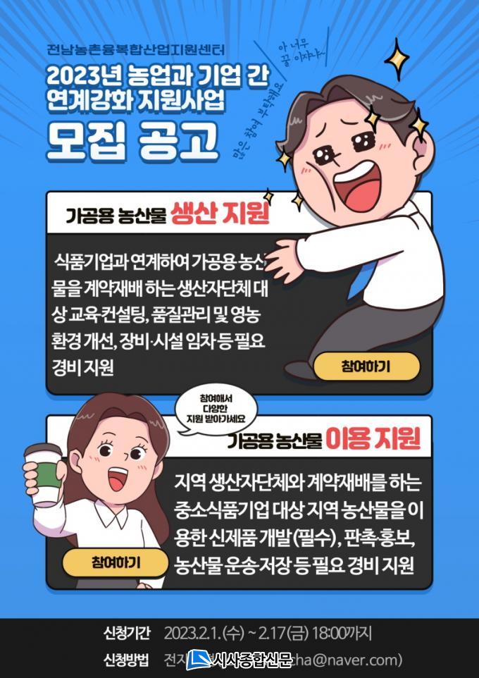 ¸ÕÀú ¡®°¡°ø¿ë ³ó»ê¹° »ý»ê Áö¿ø¡¯Àº ½Äǰ±â¾÷°ú ¿¬°èÇÏ¿© °¡°ø¿ë ³ó»ê¹°À» °è¾àÀç¹è·Î ³³Ç°ÇÏ´Â »ý»êÀÚ´Üü°¡ Áö¿øÇÒ ¼ö ÀÖ´Ù. Áö¿ø ¿ä°ÇÀº 5³ó°¡ ÀÌ»ó »ý»êÀÚ´Üü ¶Ç´Â Áö¿ª³óÇù µî°ú ¿¬°èµÈ ´Üü·Î µµ³» À§Ä¡Çϰí, »ç¾÷ÀÚµî·ÏÁõ(°íÀ¯¹øÈ£Áõ)À» ¼ÒÀ¯ÇÑ ´ÜüÀÌ´Ù.