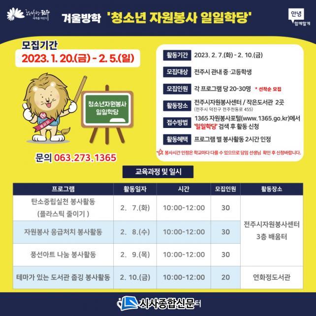 ÇÑÆí, ¿ÃÇØ·Î 16ȸ¸¦ ¸ÂÀº ¡®Ã»¼Ò³â ÀÚ¿øºÀ»ç ÀÏÀÏÇд硯Àº Æò¼Ò Çо÷ µîÀ¸·Î ¹Ù»Û ÀÏ»ó ¶§¹®¿¡ ÀÚ¿øºÀ»çȰµ¿À» Á¢ÇÒ ±âȸ°¡ ¸¹Áö ¾ÊÀº û¼Ò³âµéÀ» À§ÇØ ¹æÇÐ Áß ¿î¿µµÇ´Â Ȱµ¿À¸·Î, ÀüÁÖ½ÃÀÚ¿øºÀ»ç¼¾ÅÍ´Â Áö³ 2010³âºÎÅÍ ÀÌ ÇÁ·Î±×·¥À» ÅëÇØ û¼Ò³âµéÀÌ ´Ù¾çÇÑ ÀÚ¿øºÀ»çȰµ¿À» üÇèÇÏ°í ºÀ»ç¸¦ À§ÇÑ Àç´ÉÀ» °³¹ßÇÒ ¼ö ÀÖµµ·Ï µ½°í ÀÖ´Ù.