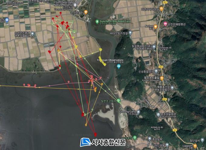 | ¼øÃµ½Ã, ±¹³» ÃÖÃÊ ÈæµÎ·ç¹Ì À§Ä¡ÃßÀû±â ºÎÂø ¼º°ø(À§Ä¡ÃßÀû±â·Î ÃßÀûÇÑ ÈæµÎ·ç¹Ì À̵¿°æ·Î(¿µ³ó´ÜÁö³») |