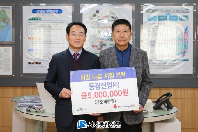 [½Ã»çÁ¾ÇսŹ® = ¿À½ÂÅà ±âÀÚ] µ¿±¤Àü¾÷(ÁÖ)°¡ °ü³» ¾î·Á¿î ÀÌ¿ôÀ» À§ÇØ ½á´Þ¶ó¸ç °Áø±º¿¡ 5¹é¸¸ ¿øÀ» Àü´ÞÇß´Ù. µ¿±¤Àü¾÷(ÁÖ)´Â ºÒ°æ±â¿¡µµ ¿¬ÀÌÀº µû¶æÇÑ ÀÌ¿ô»ç¶ûÀ» ½ÇõÇϸç Áö¿ª»çȸÀÇ ±Í°¨ÀÌ µÇ°í ÀÖ´Ù.