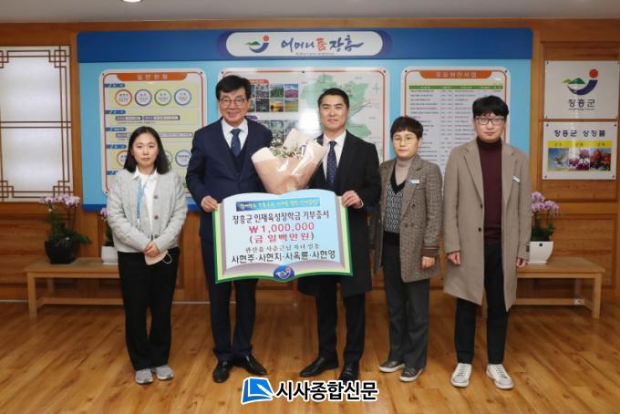 [½Ã»çÁ¾ÇսŹ® = ¿À½ÂÅà ±âÀÚ] ÀåÈﱺ °ü»êÀ¾ »çÃá±Ù ¾¾ÀÇ ÀÚ³à ÇöÁÖ, ÇöÁö, ¿Á·û, Çö¿µ ¾¾°¡ ÀÎÀçÀ°¼ºÀåÇÐ±Ý 100¸¸¿øÀ» ±âŹÇß´Ù.