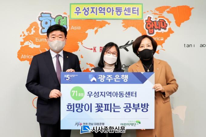 Á¶Çö±â ºÎÇàÀå°ú ±¤ÁÖÀºÇà Áö¿ª»ç¶ûºÀ»ç´Ü Á÷¿øµéÀº ¿ì¼ºÁö¿ª¾Æµ¿¼¾ÅÍÀÇ ³ëÈÄµÈ ÇнÀȯ°æÀ» °³¼±ÇϰíÀÚ Ã¥»ó°ú ÀÇÀÚ, ºöÇÁ·ÎÁ§Å͸¦ ±³Ã¼ÇßÀ¸¸ç, Çпëǰ µîÀ» ¼±¹°ÇÏ´Â µî ¾ÆÀ̵éÀÇ ²ÞÀ» ÀÀ¿øÇÏ´Â ¸Þ½ÃÁö¸¦ ÀüÇß´Ù. ¶ÇÇÑ ÄèÀûÇÑ ÇнÀȯ°æÀ» À§ÇØ ÃßÈÄ ÇнÀ½Ç µµ¹è ½Ã°øÀ» ÁøÇàÇϱâ·Î Çß´Ù.