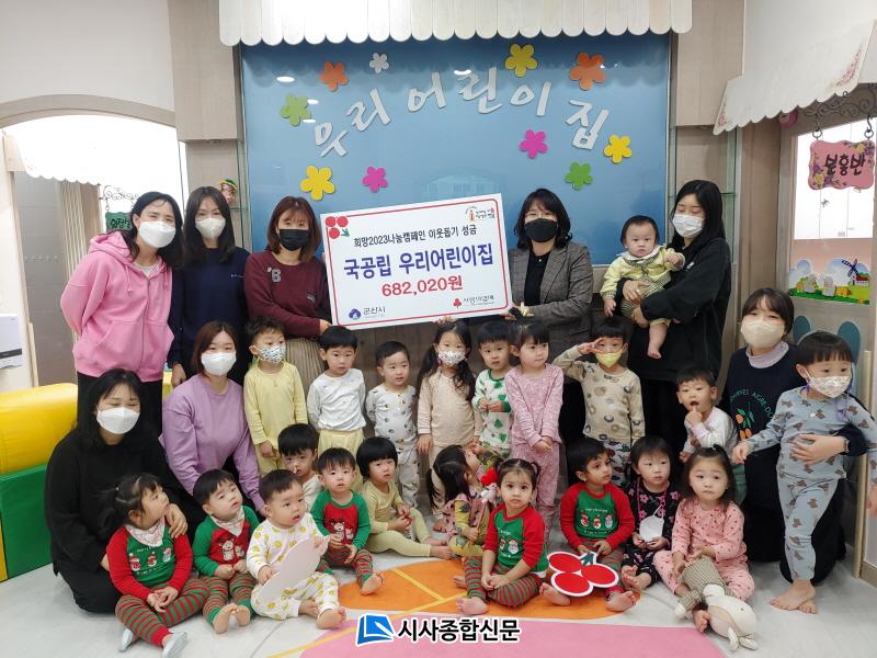 [½Ã»çÁ¾ÇսŹ® = ¿À½ÂÅà ±âÀÚ] ±º»ê½Ã´Â 13ÀÏ ¿ì¸®¾î¸°ÀÌÁý(¿øÀå ÇÑÁö¿À) ¿ø¾Æµé°ú ¾î¸°ÀÌÁý ¼±»ý´ÔµéÀÌ ¾î·Á¿î ÀÌ¿ôÀ» À§ÇØ 682,020¿øÀ» ÀÌ¿ôµ½±â ¼º±ÝÀ¸·Î ±âºÎÇß´Ù°í ¹àÇû´Ù.