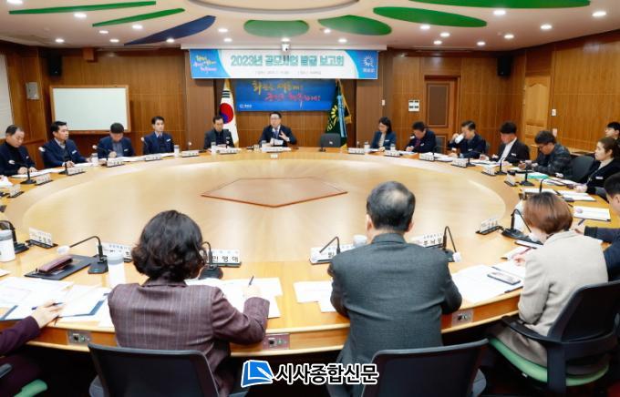 À̳¯ º¸°íȸ´Â ±¸º¹±Ô ±º¼ö ÁÖÀç·Î ºÎ±º¼ö, Àü ½Ç°ú¼ÒÀå µîÀÌ Âü¼®ÇÏ¿© 2023³â È®º¸ °¡´ÉÇÑ °ø¸ð»ç¾÷¿¡ ´ëÇÑ Áö¿ø °èȹ ¹× Àü·«Àû ÃßÁø ¹æÇâ¿¡ ´ëÇØ ³íÀǸ¦ ÁøÇàÇß´Ù. À̹ø º¸°íȸ¿¡¼ ´Ù·é °ø¸ð»ç¾÷Àº ¹®È¡¤°ü±¤, ³ó¾÷Ãà»ê, µµ½Ã°³¹ß, µµ·Î±³Åë µî °¢ ºÐ¾ß¿¡¼ °ø¸ð ÁßÀ̰ųª Áö¿ø °èȹ ÁßÀÎ »ç¾÷µé·Î »ç¾÷ºñ ±Ô¸ð·Î´Â 414¾ï ¿ø¿¡ À°¹ÚÇÑ´Ù.