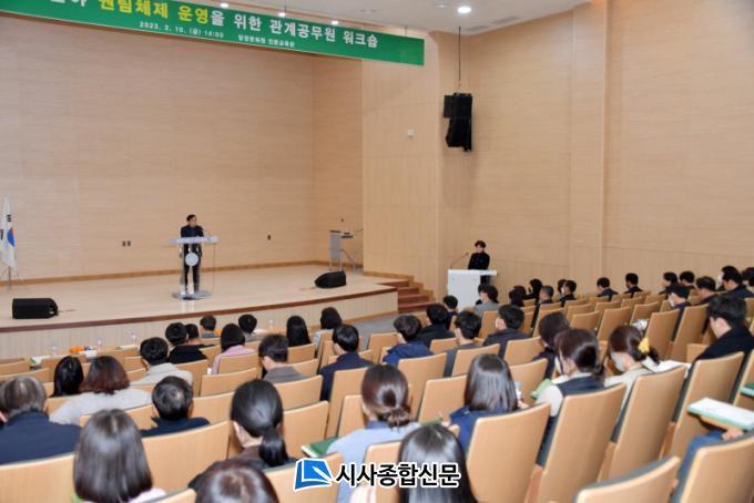 À̹ø ¿öÅ©¼óÀº ±º ³óÁ¤ºÎ¼¿Í ³ó¾÷±â¼ú¼¾ÅÍ·Î ÀÌ¿øÈµÇ¾î ÀÖ´Â ¾÷¹«¸¦ °øÀ¯Çϰí Á¤ºñÇØ ½Å·Ú¹Þ´Â ³ó¾÷ÇàÁ¤À» ±¸ÇöÇϱâ À§ÇØ ¸¶·ÃÇßÀ¸¸ç, ³ó¾÷À¯Åë°ú, Ãà»ê¿ø¿¹°ú µî ³óÁ¤ºÎ¼¿Í ³ó¾÷±â¼ú¼¾ÅÍ, ±×¸®°í À¾¸é»ó´ã¼ÒÀå, »ê¾÷ÆÀÀå µî 90¿© ¸íÀÌ Âü¼®Çß´Ù. ¿öÅ©¼ó¿¡¼´Â ³ó¾÷ÀεéÀÌ ÇàÁ¤¿¡ ´ëÇÑ ½Å·Ú¸¦ °¡Áú ¼ö ÀÖµµ·Ï ¼·ÎÀÇ ¾÷¹«¸¦ °øÀ¯ÇØ ¾÷¹«¿ª·®À» ³ôÀ̰í Áߺ¹ À¯»ç ¾÷¹«¸¦ ¹ß±¼ ¹× Á¤ºñÇß´Ù.
