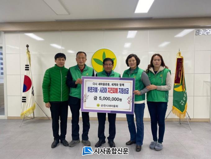 [½Ã»çÁ¾ÇսŹ® = Àå¹Î±Ô ±âÀÚ] ¼øÃµ½Ã»õ¸¶À»È¸(ȸÀå ±èµ¿Ã¶)´Â Áøµµ 7.8ÀÇ °ÁøÀÌ ¹ß»ýÇÑ Æ¢¸£Å°¿¹¿Í ½Ã¸®¾ÆÁö¿ªÀÇ ÇÇÇØº¹±¸¸¦ À§ÇÑ ¼º±ÝÀ» Àü´ÞÇÏ¿´´Ù.