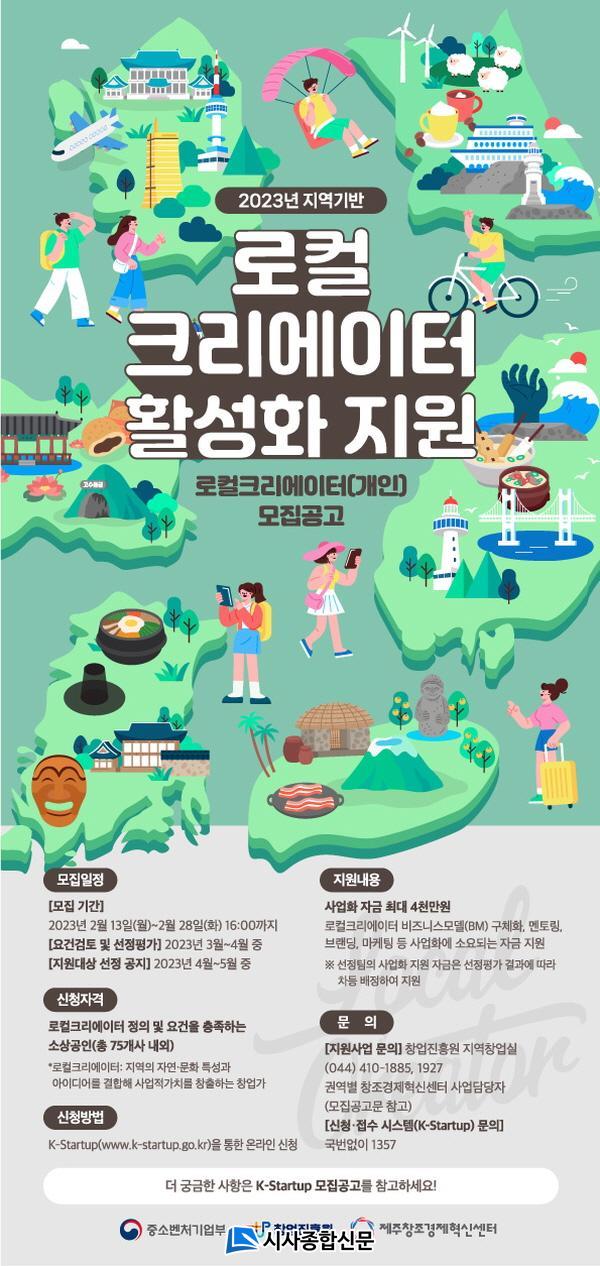 Á¦ÁÖ¼¾ÅÍ´Â Áß¼Òº¥Ã³±â¾÷ºÎ°¡ ½ÃÇàÇÏ´Â '2023³â Áö¿ª±â¹Ý ·ÎÄÃÅ©¸®¿¡ÀÌÅÍ È°¼ºÈ Áö¿ø»ç¾÷' Âü°¡ÀÚ¸¦ ¿À´Â 28ÀϱîÁö ¸ðÁýÇÑ´Ù°í ¹àÇû´Ù. À̹ø Áö¿ø»ç¾÷Àº °³Àΰú Çù¾÷ÆÀ 2°³ ºÐ¾ß·Î ±¸ºÐµÈ´Ù. Á¦ÁÖ ÀÚ¿øÀ» ±â¹ÝÀ¸·Î »ç¾÷À» ÇÏ¸ç ¼Ò»ó°øÀÎÈ®Àμ ¹ß±ÞÀÌ °¡´ÉÇÑ ¼Ò»ó°øÀÎÀº ´©±¸³ª ½Åû °¡´ÉÇϸç, °³ÀÎ ¶Ç´Â 3°³ ÀÌ»óÀÇ Çù¾÷ÆÀÀ¸·Î »ç¾÷À» ½ÅûÇÒ ¼ö ÀÖ´Ù.