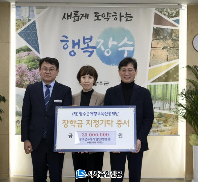 [½Ã»çÁ¾ÇսŹ® = ¿À½ÂÅà ±âÀÚ] ³ó¾÷ȸ»ç¹ýÀÎ Àå¼ö±ºÀ¯Åë»ç¾÷´Ü(´ëÇ¥ ¹Ú¹Ì°æ)Àº 14ÀÏ (Àç)Àå¼ö±º¾ÖÇâ±³À°ÁøÈïÀç´Ü(ÀÌ»çÀå ÃÖÈÆ½Ä)¿¡ ÀåÇÐ±Ý »ïõ¿À¹é¸¸¿øÀ» ±âŹÇß´Ù.