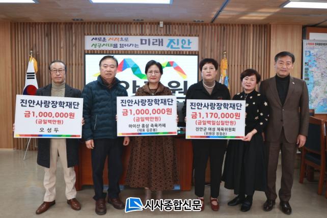 [½Ã»çÁ¾ÇսŹ® = ¿À½ÂÅà ±âÀÚ] ¸¶ÀÌ»ê È«»ï Á·¿åÄ«Æä(´ëÇ¥ ±è¿îºÀ), Áø¾È±º ¿©¼º üÀ°À§¿øÈ¸(À§¿øÀå Á¤Á¡¼ø)¿Í Áø¾ÈÀ¾ÀÇ ¿À¼ºµÎ¾¾°¡ Áö³ 14ÀÏ Áø¾È»ç¶ûÀåÇÐÀç´Ü(ÀÌ»çÀå ÀüÃἺ)¿¡ °¢°¢ ÀåÇÐ±Ý 100¸¸¿ø, 117¸¸¿ø, 100¸¸¿øÀ» Àü´ÞÇß´Ù.