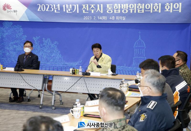 ÀüÁֽô 14ÀÏ ½Ãû ȸÀǽǿ¡¼ ¿ì¹ü±â ÀüÁÖ½ÃÀå°ú ±Ç¿µÁØ À°±º 35»ç´Ü ÀüÁÖ¿ÏÁÖ´ë´ëÀå, °æÂû, ¼Ò¹æ¼ µî ÅëÇÕ¹æÀ§ÇùÀÇȸ ¼Ò¼Ó±â°ü ´ëÇ¥ µî 20¿© ¸íÀÌ Âü¼®ÇÑ °¡¿îµ¥ ¡®2023³â 1ºÐ±â ÀüÁֽà ÅëÇÕ¹æÀ§ÇùÀÇȸ¡¯¸¦ °³ÃÖÇß´Ù.