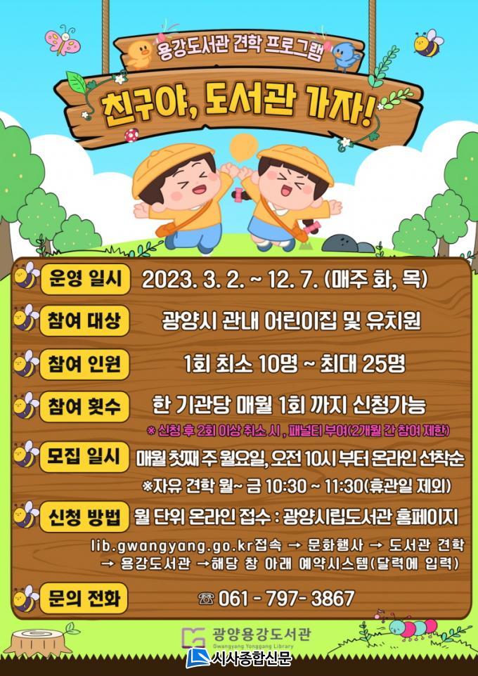 ¿À´Â 3¿ù 2ÀÏÀ» ½ÃÀÛÀ¸·Î 12¿ù 7ÀϱîÁö ¸ÅÁÖ È¡¤¸ñ¿äÀÏ(2ȸ) ¿ÀÀü 10½Ã 30ºÐ ~ 11½Ã 30ºÐ±îÁö 1½Ã°£ µ¿¾È ÁøÇàÇϸç, ÇÑ È¸´ç ÃÖ´ë 25¸íÀ» ´ë»óÀ¸·Î ÇÑ´Ù. ¸Å¿ù ù° ÁÖ ¿ù¿äÀϺÎÅÍ ¼±Âø¼øÀ¸·Î ¸ðÁýÇϸç Âü°¡¸¦ Èñ¸ÁÇÏ´Â ±â°üÀº ±¤¾ç½Ã¸³µµ¼°ü ȨÆäÀÌÁö¸¦ ÅëÇØ ½ÅûÇÏ¸é µÈ´Ù. ÀÚÀ¯ °ßÇÐÀº ÀüÈÁ¢¼ö ¹ÞÀ» ¿¹Á¤ÀÌ´Ù.