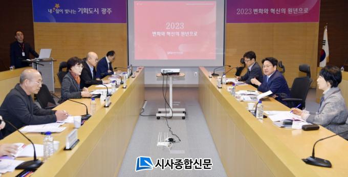 ¼Û ¿øÀåÀº ¾÷¹«º¸°í¿¡¼ ¡®2023 º¯È¿Í Çõ½ÅÀÇ ¿ø³âÀ¸·Î¡¯¶ó´Â ºñÀüÀ» ¸ñÇ¥·Î ¡ãµðÀÚÀΠȰ¿ëÀÇ ÆÐ·¯´ÙÀÓ º¯È ´ëÀÀ ¡ãµðÀÚÀÎ À¶ÇÕ Áö¿ª»ê¾÷ °íµµÈ ¡ã±¤ÁÖ °ü±¤ µðÀÚÀλóǰ °³¹ß Áö¿ø»ç¾÷ ¡ã¾ÈÀüµðÀÚÀΡ¤Ã»³âÀÏÀÚ¸® âÃâ µî ÃßÁø ¹æÇâÀ» Á¦½ÃÇß´Ù.