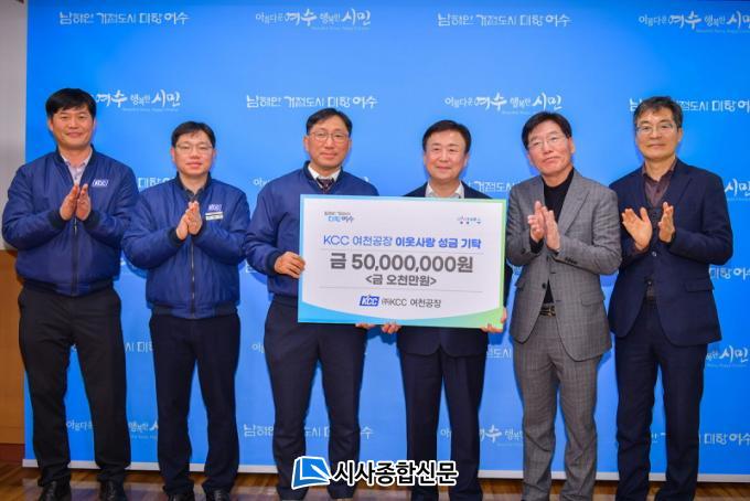 [½Ã»çÁ¾ÇսŹ® = ¿À½ÂÅà ±âÀÚ] ¿©¼ö½Ã(½ÃÀå Á¤±â¸í)´Â Áö³ 15ÀÏ (ÁÖ)KCC ¿©Ãµ°øÀå(´ëÇ¥ Á¤¸ùÁø)¿¡¼ º¹ÁöÀ§±â°¡±¸ ÁÖ°Åȯ°æ °³¼±À» À§ÇÑ ¼º±Ý 5õ¸¸ ¿øÀ» ±âŹÇß´Ù°í ¹àÇû´Ù.