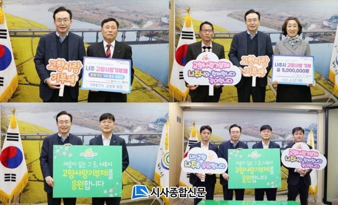 Àü¶ó³²µµ ³ªÁÖ½Ã(½ÃÀå À±º´ÅÂ)´Â ÃÖ±Ù ¾ð·ÐÀÎÀÌÀÚ °¡¶ôÁ¾Ä£È¸ÀåÀÎ ±è¼º´ë ¾¾, ¹Ú³»Ãá NH³óÇùÀºÇà ±¤ÁÖ¿µ¾÷º»ºÎÀå, ±â¾÷ÀÎ À±¼º¿¬ ´ëÇ¥°¡ °íÇâ»ç¶û±âºÎ¾×À» °¢°¢ ±âŹÇß´Ù°í 18ÀÏ ¹àÇû´Ù.