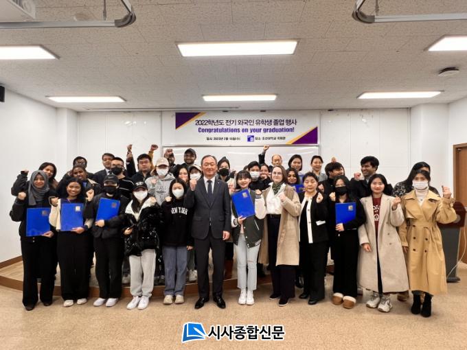 ÃÖ±Ù Á¶¼±´ë ±¹Á¦°ü¿¡¼ ÁøÇàµÈ 2022Çг⵵ Àü±â ¿Ü±¹ÀÎ À¯Çлý Á¹¾÷½Ä¿¡´Â Áß±¹, º£Æ®³², ¸ù°ñ µî 14°³ ±¹°¡ 100¿©¸íÀÇ ÇлýµéÀ» ºñ·ÔÇØ ¹Î¿µµ· ÃÑÀå, °øÁø¼º ´ë¿ÜÇù·ÂóÀå µîÀÌ Âü¼®Çß´Ù.