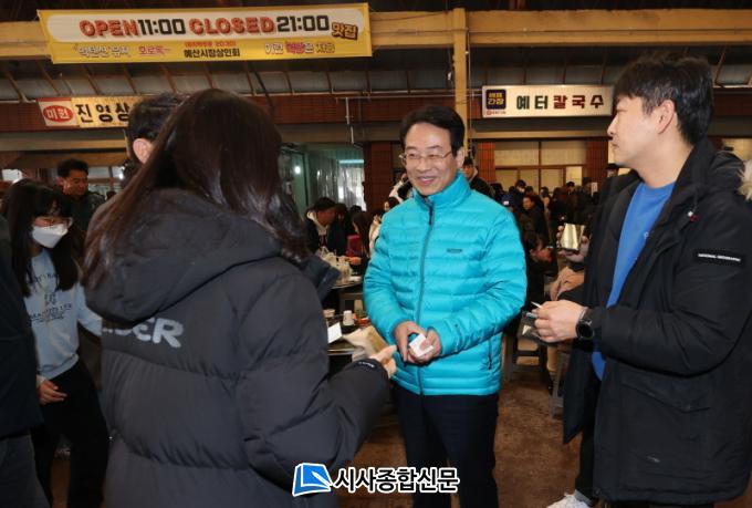 ¿¹»ê½ÃÀåÀº ÃÖ±Ù ¹éÁ¾¿ø ´õº»ÄÚ¸®¾Æ ´ëÇ¥¿Í ¼ÕÀ» Àâ°í ¡®¿¹»ê½ÃÀå »ì¸®±â ÇÁ·ÎÁ§Æ®¡¯¸¦ ½ÃÇàÇØ Àü±¹ÀûÀÎ ¸í¼Ò·Î Å»¹Ù²ÞÇß´Ù. ¿À·¡µÈ Àå¿Á¿¡ Çâ¼ö¸¦ ºÒ·¯ÀÏÀ¸Å°´Â ·¹Æ®·Î °¨¼ºÀ» ´õÇØ ¸®¸ðµ¨¸µÇϰí, û³â â¾÷ÀεéÀ» ¸ðÁýÇØ ÀÚÀ¯·Ó°Ô Àå»ç¸¦ ÇÒ ¼ö ÀÖµµ·Ï â¾÷ ÄÁ¼³ÆÃÀ» ÁøÇàÇßÀ¸¸ç, Áö¿ª ³óƯ»ê¹°À» Ȱ¿ëÇÑ µ¶Ã¢ÀûÀÎ À½½Äµµ ¼±º¸À̰í ÀÖ´Ù.