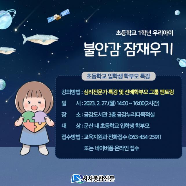 ½Ã´Â ¿À´Â 27ÀÏ ¿ÀÈÄ 2½Ã Á¶Ã̵¿ ±Ý°µµ¼°ü 3Ãþ ±Ý°´©¸®´Ù¸ñÀû½Ç¿¡¼ ¿¹ºñ ÃʵîÇб³ 1Çгâ Çкθ𸦠´ë»óÀ¸·Î ¡®ÃʵîÇб³ 1Çг⠿츮¾ÆÀÌ ºÒ¾È°¨ ÀáÀç¿ì±â Ư°¡¯À» ½Ç½ÃÇÑ´Ù°í ¹àÇû´Ù.
