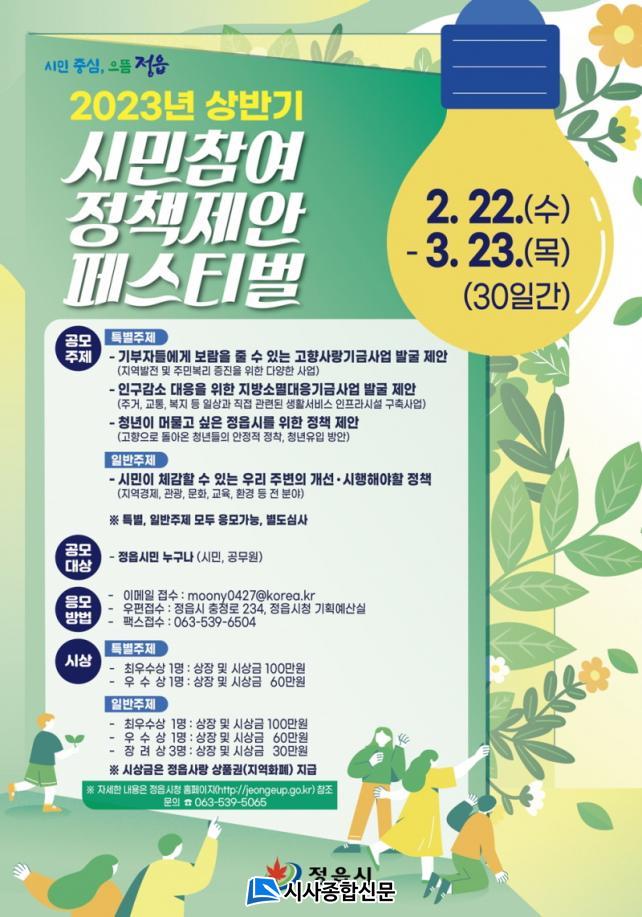 ½Ã´Â 22ÀϺÎÅÍ ³»´Þ 23ÀϱîÁö 30ÀÏ °£ ½Ã¹Î º¹Áö¿Í ÇàÁ¤ ¼ºñ½º Çâ»óÀ» À§ÇØ Âü½ÅÇϰí âÀÇÀûÀÎ ½Ã¹ÎÂü¿© Á¤Ã¥ Á¦¾ÈÀ» °ø¸ðÇÑ´Ù. ÀÌ´Â ¡®½Ã¹ÎÂü¿© ¿¸° ½ÃÁ¤¡¯À̶ó´Â ½ÃÁ¤ ¸ñÇ¥¸¦ ½ÇõÇÏ¸ç ½ÃÁ¤ ¿î¿µ¿¡ ½Ã¹ÎÀÇ ÀǰßÀ» ¹Ý¿µÇϰí, ÁֹΠ½Ç»ýȰ ÆíÀÍ Çâ»ó°ú ÁֹιÐÂøÇü Á¤Ã¥, û³â¡¤Àα¸ À¯ÀÔ Á¤Ã¥ µî ´Ù¾çÇÑ Á¤Ã¥À» ¹ß±¼Çϰڴٴ ÃëÁö´Ù.
