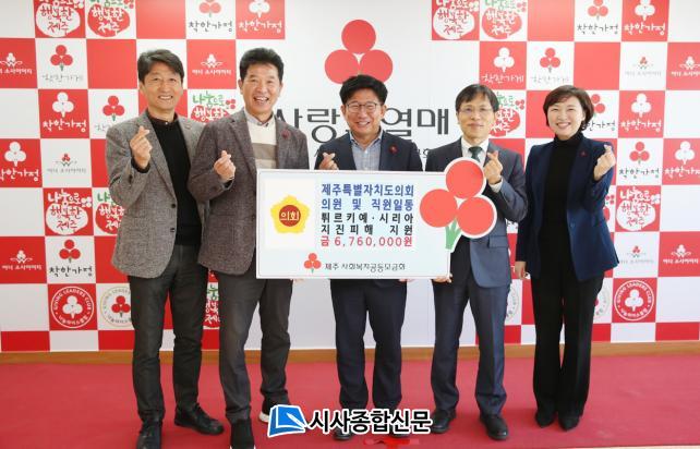 [½Ã»çÁ¾ÇսŹ® = °í¼º¹Î ±âÀÚ] Á¦ÁÖÆ¯º°ÀÚÄ¡µµÀÇȸ(ÀÇÀå ±è°æÇÐ)´Â Áö³ 2¿ù 6ÀÏ ¹ß»ýÇÑ Æ¢¸£Å°¿¹․½Ã¸®¾Æ ´ë±Ô¸ð ÁöÁøÀ¸·Î »îÀÇ ÅÍÀüÀ» ÀÒÀº ÀÌÀç¹Î Áö¿øÀ» À§ÇØ 2¿ù 21ÀÏ Á¦ÁÖ»çȸº¹Áö°øµ¿¸ð±Ýȸ¿¡ ¹æ¹®ÇÏ¿© ¼º±Ý 676¸¸¿øÀ» Àü´ÞÇß´Ù.