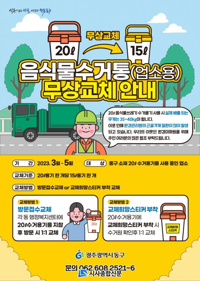 | ±¤Áֽà µ¿±¸, 20§¤ À½½Ä¹°¾²·¹±â Àü¿ë ¼ö°Å ¿ë±â ¹«»ó ±³Ã¼ 15§¤ ¿ë±â·Î¡¦È¯°æ°ü¸®¿ø Áúȯ ¿¹¹æ¡¤±Ù¹«È¯°æ °³¼± |