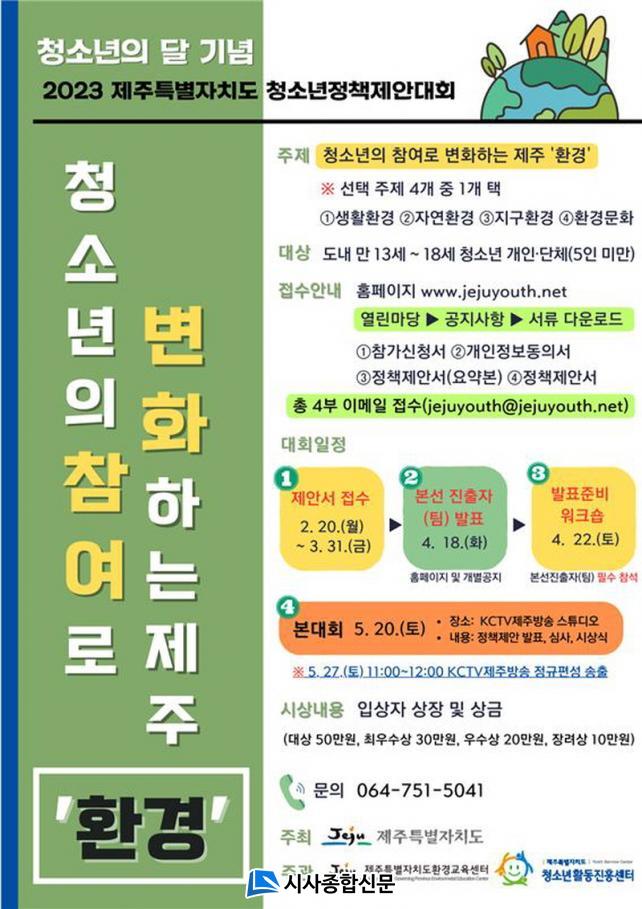 û¼Ò³âÀÇ ´Þ ±â³ä ¡¸2023 Á¦ÁÖÆ¯º°ÀÚÄ¡µµ û¼Ò³âÁ¤Ã¥Á¦¾È´ëȸ¡¹´Â Á¦ÁÖµµ³»¿¡ ÇÊ¿äÇÑ Ã»¼Ò³â Á¤Ã¥ ¼ö¸³ °úÁ¤¿¡ û¼Ò³âµéÀÌ Á÷Á¢ Âü¿©ÇÏ¿©, û¼Ò³âµéÀÇ ÁÖµµÀû Âü¿©±Ç ½ÇÇö ±âȸ¸¦ Á¦°øÇÏ°í ±ÇÀÍ Çâ»ó ¹× ½Ã¹Î¿ª·® ÇÔ¾çÀ» ¸ñÀûÀ¸·Î °³ÃֵȴÙ.