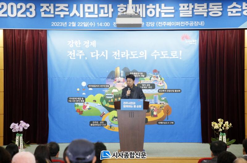 ¿ì¹ü±â ½ÃÀåÀº 22ÀÏ ÆÈº¹µ¿ ÀüÁÖÆäÀÌÆÛ »ç¹«µ¿ ´ë°´ç¿¡¼ Àα٠Áֹΰú ½ÃÀÇ¿ø, »ê´Ü À¯°ü±â°ü ´ëÇ¥, ÀÚ»ý´Üüȸ¿ø µî 200¿© ¸íÀÌ Âü¼®ÇÑ °¡¿îµ¥ ÆÈº¹µ¿ Áֹεé°ú ´ëÈÀÇ ½Ã°£À» °¡Á³´Ù. ¾Õ¼ ¿ì ½ÃÀåÀº Áö³ 16ÀϺÎÅÍ ½Ã¹ÎµéÀÇ »î ¼ÓÀ¸·Î ã¾Æ°¡ ÀüÁÖÀÇ À§´ëÇÑ µµ¾à°ú ´ëº¯ÇõÀ» À§ÇÑ ÀǰßÀ» µè´Â µ¿ ¼ø¹æ ÀÏÁ¤À» À̾î¿À°í ÀÖ´Ù.