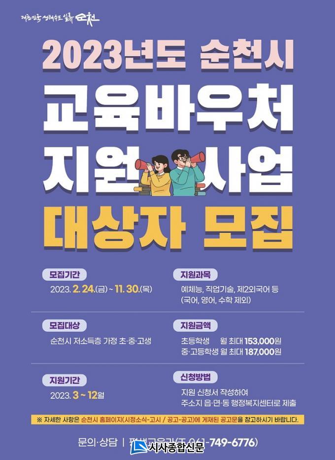 Èñ¸ÁÀÚ´Â ¼øÃµ½Ã ´©¸®Áý¿¡ °Ô½ÃµÈ Áö¿ø ½Åû¼¸¦ ÀÛ¼ºÇÏ¿© ÁÖ¼ÒÁö À¾¸éµ¿ ÇàÁ¤º¹Áö¼¾ÅÍ¿¡ Á¦ÃâÇÏ¸é µÇ¸ç, ½Åû ±â°£Àº 2¿ù 24ÀϺÎÅÍ 11¿ù 30ÀϱîÁöÀÌ´Ù. ´Ü, ¸ðÁýµÈ Àοø¿¡ µû¶ó Á¢¼ö°¡ Á¶±â Á¾·áµÉ ¼ö ÀÖ´Ù. Áö¿ø ´ë»óÀÚ·Î ¼±Á¤µÈ Çлý¿¡°Ô´Â ±³À°¹Ù¿ìó °¡¸ÍÁ¡À¸·Î µî·ÏµÈ Çпø¿¡¼¸¸ »ç¿ëÇÒ ¼ö ÀÖ´Â ±³À°¹Ù¿ìó Ä«µå°¡ Áö±ÞµÈ´Ù.