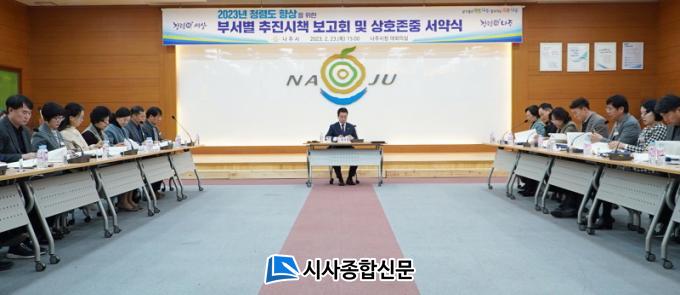 ³ªÁÖ½Ã(½ÃÀå À±º´ÅÂ)´Â ÃÖ±Ù °¿µ±¸ ºÎ½ÃÀå ÁÖÀç·Î Àü ºÎ¼¿¡¼ ¹ß±¼ÇÑ Ã»·Åµµ Çâ»ó ½ÃÃ¥ º¸°íȸ¸¦ °¡Á³´Ù°í 26ÀÏ ¹àÇû´Ù. º¸°íȸ¿Í ÇÔ²² Àü ºÎ¼Àå, À¾¡¤¸é¡¤µ¿Àå 54¸íÀº û·Å ¼¾à½ÄÀ» ÅëÇØ Á¶Á÷ ³» °©Áú ±ÙÀý°ú »óÈ£ Á¸ÁßÀ» ´ÙÁüÇÏ´Â ½Ã°£À» °¡Á³´Ù.