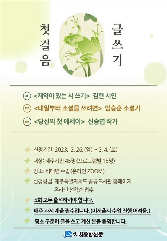 °¿¬ ½ÅûÀº ¿À´Â 3¿ù 4ÀϱîÁö °ø°øµµ¼°ü ȨÆäÀÌÁö(https://lib.jeju.go.kr/)¸¦ ÅëÇØ Á¢¼öÇÒ ¼ö ÀÖÀ¸¸ç, ÇÁ·Î±×·¥º° 12~15¸íÀ¸·Î ¼±Âø¼ø ¸¶°¨µÈ´Ù.