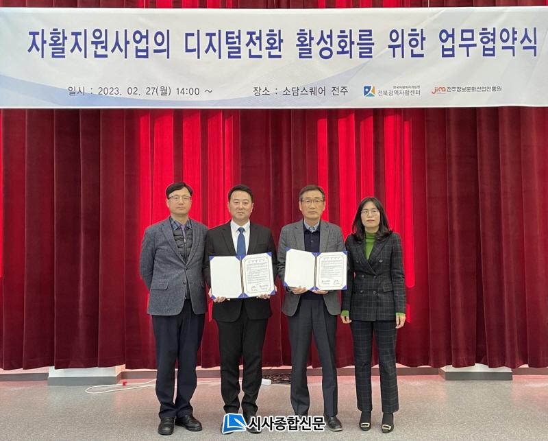 ÀüÁÖÁ¤º¸¹®È»ê¾÷ÁøÈï¿ø(¿øÀå ÀÌ¿µ·Î)°ú ÀüºÏ±¤¿ªÀÚȰ¼¾ÅÍ(¼¾ÅÍÀå ¹é¿µ±Ô)´Â 27ÀÏ ¼Ò´ã½ºÄù¾î ÀüÁÖ(´öÁø±¸ ¼±Í·Î 107)¿¡¼ ÀüÁÖ¡¤ÀüºÏÁö¿ª ÀÚȰ±â¾÷ÀÇ ¿Â¶óÀÎ ½ÃÀå ÁøÃâ°ú ¿Â¶óÀÎ ÆÇ·Î°³Ã´À» À§ÇØ Àû±Ø Çù·ÂŰ·Î ÇÏ´Â ³»¿ëÀ» °ñÀÚ·Î ÇÑ ¾÷¹«Çù¾àÀ» ü°áÇß´Ù.