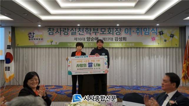 [½Ã»çÁ¾ÇսŹ® = °í¼º¹Î ±âÀÚ] Âü»ç¶û½ÇõÇкθðȸ(ȸÀå ±è¼ºÈñ)´Â Áö³ 25ÀÏ(Åä) Á¦ÁÖ½ãÈ£ÅÚ ´ë¿¬È¸Àå¿¡¼ ¿¸° Á¦16¡¤17´ë ȸÀå ÀÌ¡¤ÃëÀÓ½ÄÀ» ±â³äÇÏ¿© Á¦ÁÖÆ¯º°ÀÚÄ¡µµ»çȸº¹ÁöÇùÀÇȸ(ȸÀå °í½ÂÈ)¿¡¼ ¿î¿µÁßÀÎ Á¦ÁÖÆ¯º°ÀÚÄ¡µµÇªµå¹ðÅ©¿¡ ÀÌ¿ô»ç¶û ½Ò 1,000kgÀ» Àü´ÞÇß´Ù.