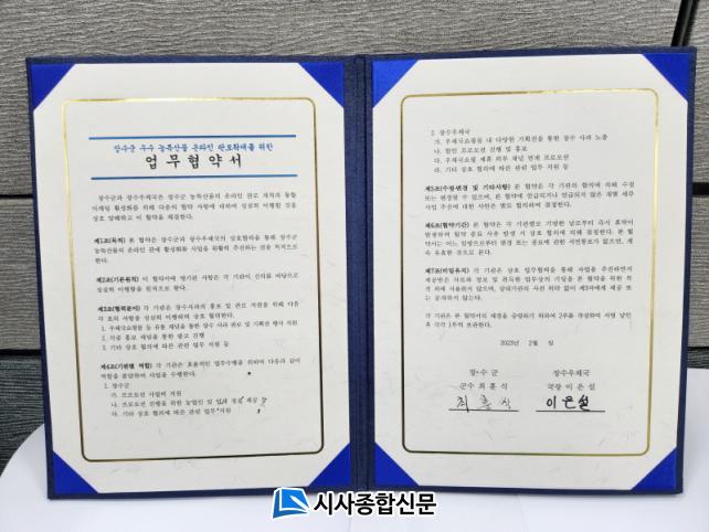 [½Ã»çÁ¾ÇսŹ® = ¿À½ÂÅà ±âÀÚ] Àå¼ö±ºÀÌ Áö¿ªÀÇ ¿ì¼ö ³óƯ»ê¹°ÀÇ ÆÇÃË ¹× ÅëÇÕ¸¶ÄÉÆÃ È°¼ºÈ¸¦ À§ÇØ Áö³ 27ÀÏ Àå¼ö¿ìü±¹°ú ¿Â¶óÀÎ ÆÇ¸ÅÃËÁø Çù¾àÀ» ¸Î¾ú´Ù°í ¹àÇû´Ù.