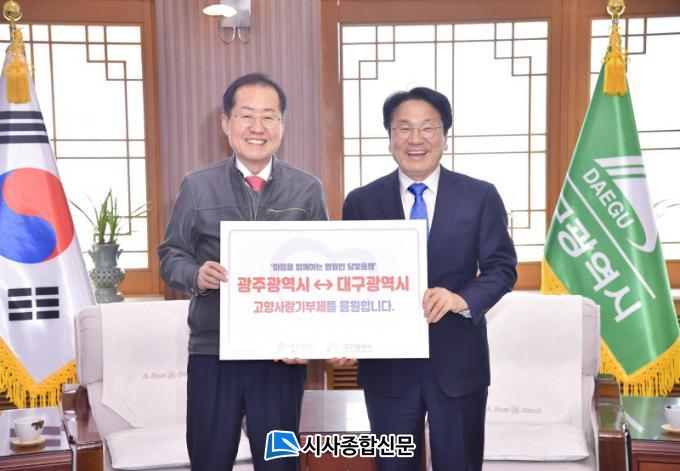 | °±âÁ¤ ±¤ÁÖ½ÃÀå, È«ÁØÇ¥ ´ë±¸½ÃÀå°ú °íÇâ»ç¶û±âºÎÁ¦ »óÈ£±âºÎ±Ý Àü´Þ ±¤ÁÖ±¤¿ª½Ã ±»°ÇÇÑ ¡®´Þºûµ¿¸Í¡¯ ¡®°íÇâ»ç¶û±âºÎ¡¯µµ ÇÔ²² ÇÑ´Ù