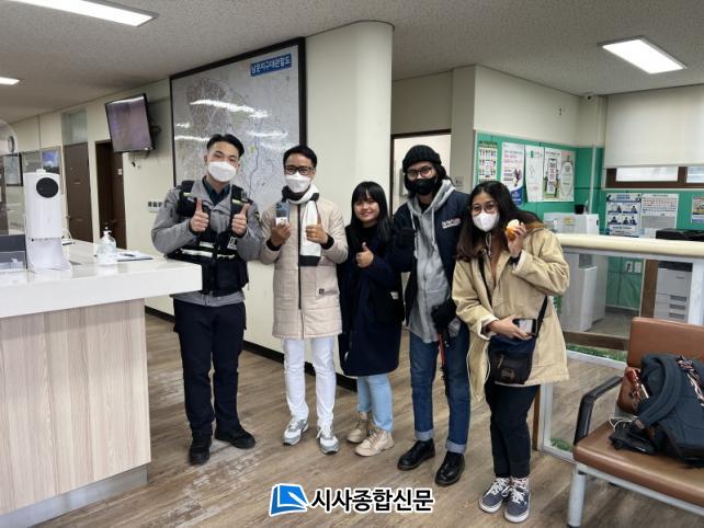 ÇÑÆí, ÇöÀå Ã⵿ °æÂûÀº Å뿪¼ºñ½º(1330)·Î ž½ÂÁö È®ÀÎ ¹× ÁÖº¯ °Ç¹° CCTV¿µ»ó ÀڷḦ ÅëÇØ ÅýùøÈ£¸¦ È®ÀÎ ÈÄ ºÐ½Çǰ µ¹·Á¹Þ¾Æ Àü´ÞÇϸç, ºÐ½ÇǰÀ» µ¹·Á¹ÞÀº ¿Ü±¹ÀÎ °ü±¤°´µéÀº ³·¼± Çѱ¹ ¿©ÇàÁß ÈÞ´ëÆùÀ» ÀÒ¾î¹ö·Á ³«´ãÇÏ¿´À¸³ª Á¦ÁÖ°æÂûÀÇ Ä£ÀýÇÔ°ú ½Å¼ÓÇÑ Á¶Ä¡·Î ã°Ô µÇ¾î ³Ê¹«³ª ±â»Ú°í ÃÖ°íÀÇ °æÂûÀ̶ó¸ç °¨»ç Ç¥½ÃÇß´Ù.