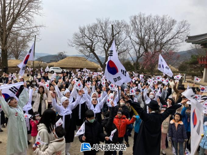 ¼øÃµ½Ã´Â Âü¿©ÀÚ Àü¿ø¿¡°Ô ¼ÒÇü űر⸦ ¹èºÎÇÏ°í ¾î¸°À̵鿡°Ô´Â űظ¶Å©°¡ ±×·ÁÁø ¸Ó¸®¶ì¸¦ ¹èºÎÇÏ¿© ¸¸¼¼»ïâ ºÐÀ§±â¸¦ °íÁ¶½ÃÄ×´Ù. °Å¸®ÇàÁø¿¡ ³¡±îÁö Âü¿©ÇÑ ½Ã¹Îµé¿¡°Ô´Â ³«¾È3․1¿îµ¿¾Ö±¹Áö»çÀ¯Á·È¸¿¡¼ ¼ÒÁ¤ÀÇ °£½ÄÀ» Á¦°øÇØ Âü¿© ½Ã¹Îµé¿¡°Ô È£ÀÀÀ» ¾ò¾ú´Ù.
