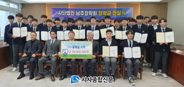 [½Ã»çÁ¾ÇսŹ® = °í¼º¹Î ±âÀÚ] ³²ÁÖ°íµîÇб³Ãѵ¿Ã¢È¸¿Í (»ç)³²ÁÖÀåÇÐȸ°¡ 3¿ù 2ÀÏ ³²ÁÖ°íµîÇб³(±³Àå ÇÑ»ó¿ë)¸¦ ¹æ¹®ÇÏ¿© ÀåÇбÝÀü´Þ Çà»ç¸¦ ÁøÇàÇß´Ù.