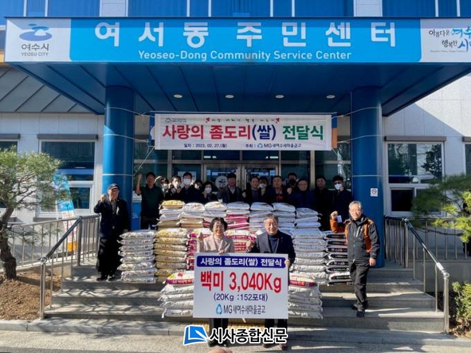 À̳¯ Àü´Þ½Ä¿¡´Â À̱¸±Ù MG»õ¿©¼ö»õ¸¶À»±Ý°íÀÌ»çÀå, Àå¸íÀÌ ¿©¼µ¿Àå, ¾ÆÆÄÆ® °ü¸®¼ÒÀå µî 30¿©¸íÀÌ Âü¼®ÇßÀ¸¸ç, ¡®»ç¶ûÀÇ Á»µµ¸® ¿îµ¿¡¯À¸·Î ¸¶·ÃÇÑ ¹é¹Ì 20kg, 152Æ÷(800¸¸¿ø »ó´ç)À» Àü´ÞÇß´Ù. ±âŹ ¹ÞÀº ÈÄ¿øÇ° ¹é¹Ì´Â ¿©¼µ¿Áֹμ¾ÅÍ¿Í °ü³» ¾ÆÆÄÆ® °ü¸®»ç¹«¼Ò¸¦ ÅëÇØ ¼Ò¿Ü°èÃþ°ú º¹Áö»ç°¢Áö´ë¿¡ ³õÀÎ 152°¡±¸¿¡ Àü´ÞÇÒ ¿¹Á¤ÀÌ´Ù.