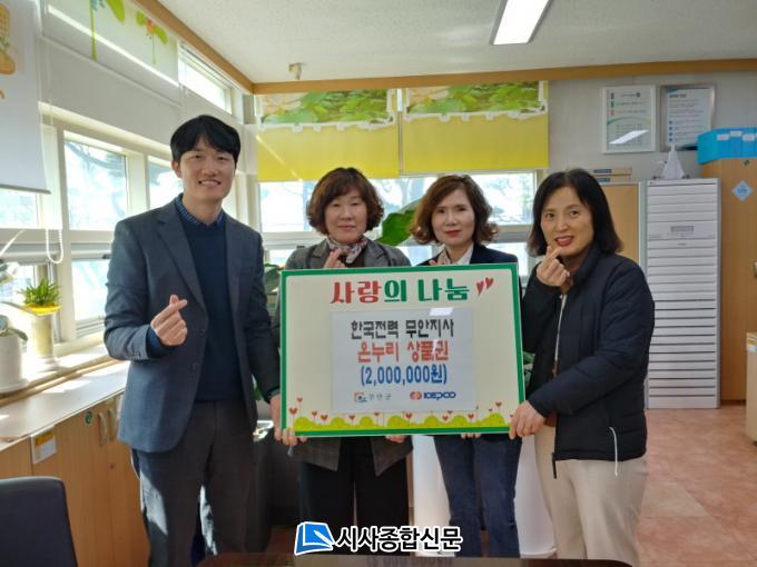 [½Ã»çÁ¾ÇսŹ® = ¿À½ÂÅà ±âÀÚ] ¹«¾È±º(±º¼ö ±è»ê)Àº Áö³ 3ÀÏ Çѱ¹Àü·Â°ø»ç ¹«¾ÈÁö»ç°¡ ¿¡³ÊÁö Ãë¾à°èÃþ Áö¿øÀ» À§ÇØ ¿Â´©¸® »óǰ±Ç 200¸¸¿øÀ» ±âºÎÇß´Ù°í ¹àÇû´Ù.