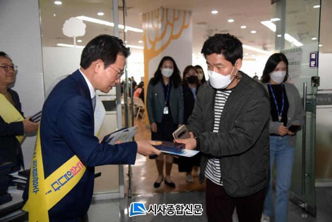 À̳¯ Ä·ÆäÀο¡´Â ¹®¿µÈÆ ÇàÁ¤ºÎ½ÃÀå, À̰©Àç °¨»çÀ§¿øÀå µîÀÌ Âü¿©ÇØ Á¡½É½Ã°£ ±¸³»½Ä´çÀ» ÀÌ¿ëÇÏ´Â Á÷¿øµé¿¡°Ô ÀÌÇØÃæµ¹¹æÁö¹ý ¸®Çø´°ú û·ÅÈ«º¸¹°À» ¹èºÎÇß´Ù.