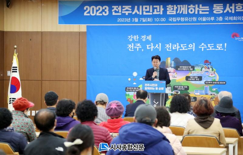 ¿ì¹ü±â ½ÃÀåÀº 7ÀÏ ¿ÀÀü°ú ¿ÀÈÄ °¢°¢ ÀüÁÖ µ¿³²ºÎ Áö¿ªÀÇ °ü¹®ÀÎ µ¿¼Çе¿°ú ¼¼Çе¿À» Â÷·Ê·Î ¹æ¹®ÇØ ½Ã¹Îµé¿¡°Ô ½ÃÁ¤ ¹ßÀü¿¡ ´ëÇÑ ºñÀüÀ» ¼³¸íÇϰí ÀüÁÖ ¹ßÀüÀ» À§ÇØ ÇÔ²² °í¹ÎÇÏ´Â ¡®½Ã¹Î°ú ÇÔ²²ÇÏ´Â µ¿ ¼ø¹æ¡¯ ÀÏÁ¤À» ¼ÒÈÇß´Ù.