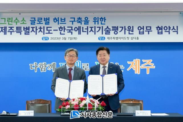 ±Ç±â¿µ ¿øÀåÀº ¡°Á¦ÁÖµµ´Â 2030³â±îÁö ź¼Ò¹èÃâÀÌ ¾ø´Â ¼¶À¸·Î ¸¸µé°Ú´Ù´Â ´ã´ëÇÑ °èȹÀ» ÃßÁøÇϸç Àç»ý¿¡³ÊÁö¿Í ¼ö¼Ò»ê¾÷ À°¼ºÀ» ¼±µµÇϴ Ưº°ÇÑ Áö¿ª¡±À̶ó¸ç ¡°¾÷¹«Çù¾àÀ» ¸Î°ÔµÈ °ÍÀ» ¸Å¿ì ¶æ±í°Ô »ý°¢Çϸç Á¦ÁÖµµ°¡ ¸í½Ç»óºÎÇÑ ±×¸°¼ö¼Ò ±Û·Î¹ú Çãºê·Î µµ¾àÇÒ ¼ö ÀÖµµ·Ï Àû±ØÀûÀ¸·Î Çù·ÂÇϰڴ١±°í ÀüÇß´Ù.