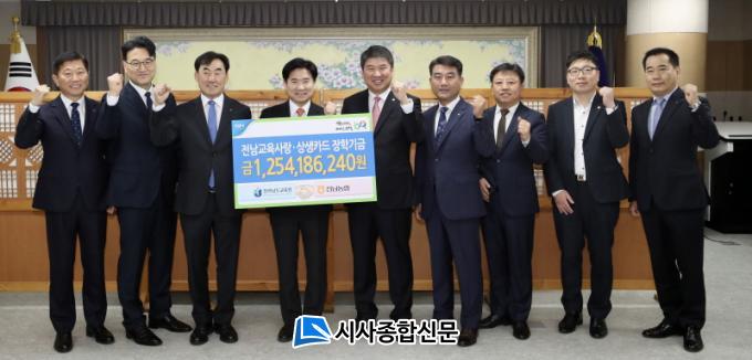 ÇÑÆí, ±è´ëÁß ÀÌ»çÀåÀº ¡°NH³óÇùÀºÇà°ú ÇÔ²² Á¶¼ºÇÑ Àü³²±³À°»ç¶û¡¤»ó»ýÄ«µå ÀåÇбâ±ÝÀº Àü³² ÇлýµéÀÌ ²ÞÀ» ÆîÄ¡´Â µ¥ ¼ÒÁßÇÑ ¹Ø°Å¸§À¸·Î ¾²ÀÏ °Í.¡±À̶ó¸ç ¡°Àü³² ÇлýµéÀÇ º¹Áö ÁõÁøÀ» À§ÇØ ±â±ÝÀ» º¸´Ù Åõ¸íÇϰí È¿À²ÀûÀ¸·Î ¿î¿µÇϰڴÙ.¡±°í ¸»Çß´Ù.