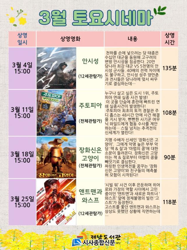 ¼±Á¤µÈ ¿µÈ´Â ¸ÅÁÖ Åä¿äÀÏ ¿ÀÈÄ 3½Ã µµ¼°ü °´ç¿¡¼ ¹«·á »ó¿µµÇ¸ç, ÀÚ¼¼ÇÑ ÀÏÁ¤Àº ºÙÀÓÀÚ·á ¹× È¨ÆäÀÌÁö(https://org.jje.go.kr/lib/index.jje)¸¦ Âü°íÇϰųª ÀüÈ(T.766-4600)·Î ¹®ÀÇÇÏ¸é µÈ´Ù.