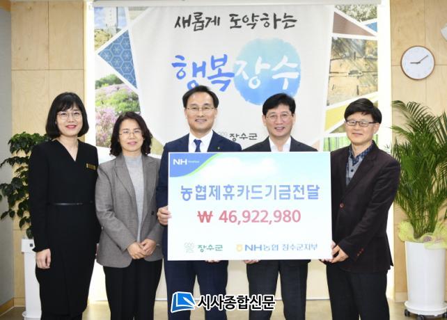 À̳¯ Àü´ÞµÈ ±â±ÝÀº NH³óÇùÀºÇà°ú Àå¼ö±º °£ °øµ¿Çù¾à¿¡ µû¶ó Áö³ÇØ 1³â°£ Àå¼ö±ºÃ» ¹ýÀÎÄ«µå, °ø¹«¿ø º¹ÁöÄ«µå¿Í º¸Á¶±Ý Àü¿ëÄ«µå »ç¿ë¾×ÀÇ 0.2~1.0%¸¦ Àå¼ö±º ¹ßÀü ±â±ÝÀ¸·Î Àû¸³ÇÑ °ÍÀ¸·Î, ÃÑ 4,692¸¸2,980¿øÀ» Àü´ÞÇß´Ù.
