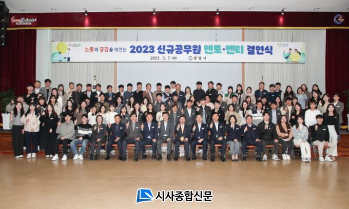 À̳¯ °á¿¬½ÄÀº 6±Þ ÆÀÀå ¸àÅä 18¸í°ú ½Å±Ô°ø¹«¿ø ¸àƼ 89¸í µî 150¿© ¸íÀÌ Âü¼®ÇÑ °¡¿îµ¥ ¸àÅä․¸àƼ ¼Ò°³¿Í ¼±¼ µîÀ» ÁøÇàÇß´Ù.