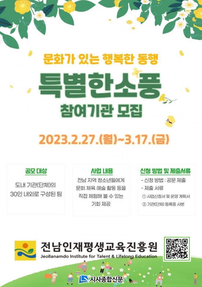 | Àü³²ÀÎÀçÆò»ý±³À°ÁøÈï¿ø, 2023³â Ưº°ÇÑ ¼Òdz Âü¿©±â°ü ¸ðÁý |