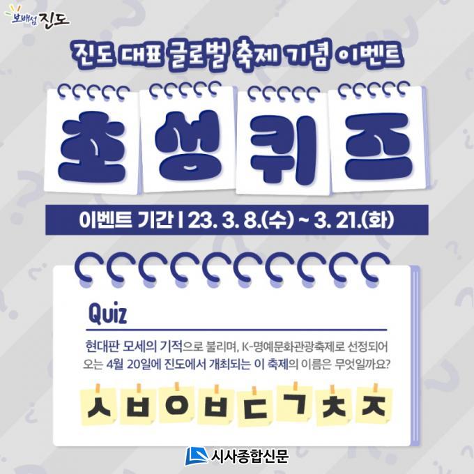 Ãʼº ÄûÁî´Â Çö´ëÆÇ ¸ð¼¼ÀÇ ±âÀûÀ¸·Î ºÒ¸®¸ç, K-¸í¿¹¹®È°ü±¤ÃàÁ¦·Î ¼±Á¤µÇ¾î ¿À´Â 4¿ù 20ÀϺÎÅÍ Áøµµ±º¿¡¼ °³ÃֵǴ ÃàÁ¦ÀÇ À̸§À» ¸ÂÃß¸é µÈ´Ù.