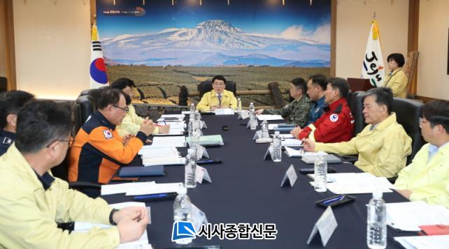 [½Ã»çÁ¾ÇսŹ® = °í¼º¹Î ±âÀÚ] ÃÖ±Ù °ÇÁ¶ÇÑ ³¯¾¾°¡ À̾îÁö´Â °¡¿îµ¥ Á¦ÁÖÆ¯º°ÀÚÄ¡µµ°¡ È¿°úÀûÀÎ »êºÒ ¿¹¹æ°ú ´ëÀÀÀ» À§ÇØ 9ÀÏ ¿ÀÈÄ 2½Ã µµÃ» º»°ü ȸÀǽǿ¡¼ ¡®2023³â Á¦ÁÖµµ »êºÒ¹æÁöÇùÀÇȸ¡¯¸¦ °³ÃÖÇß´Ù.